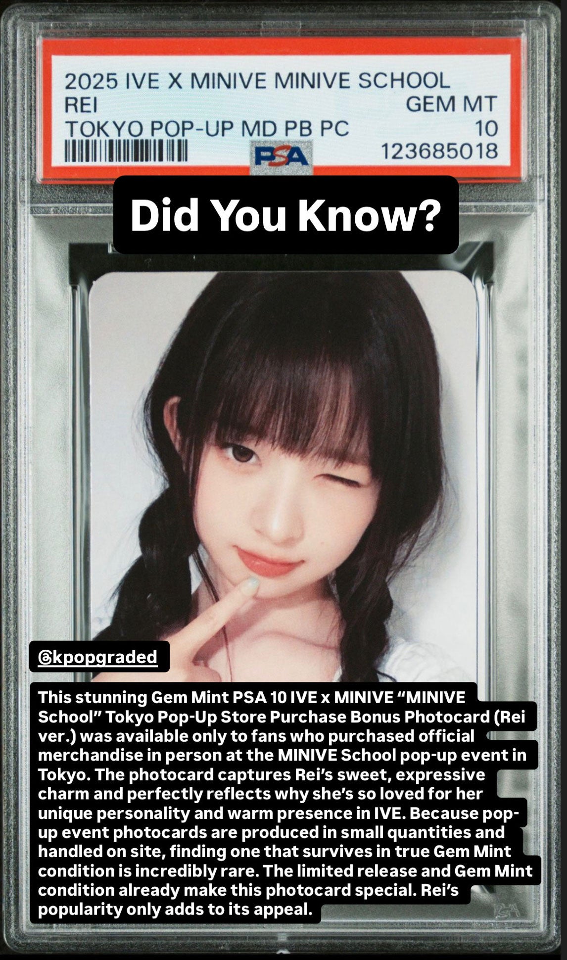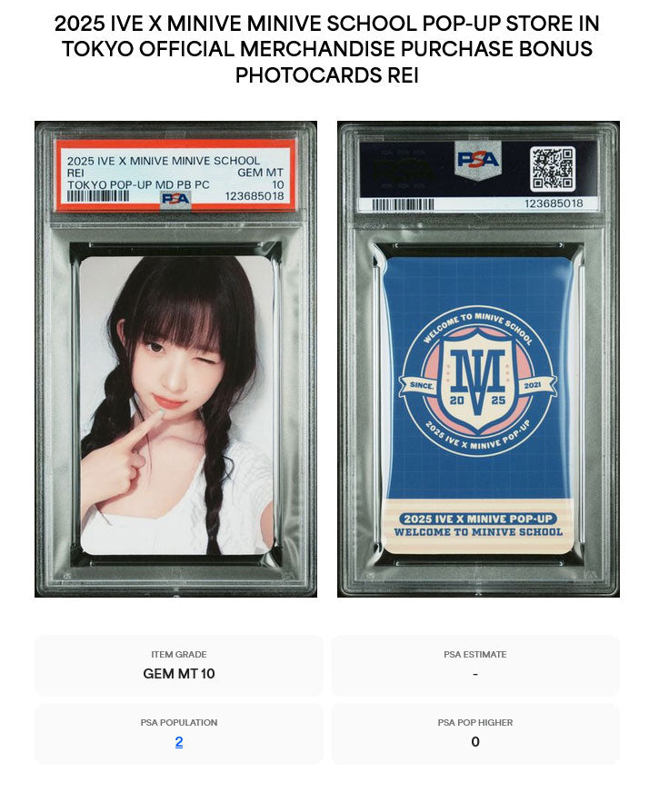 REI 2025 IVE X MINIVE MINIVE SCHOOL POP-UP STORE IN TOKYO OFFICIAL MERCHANDISE PURCHASE BONUS PHOTOCARD GEM MINT PSA 10